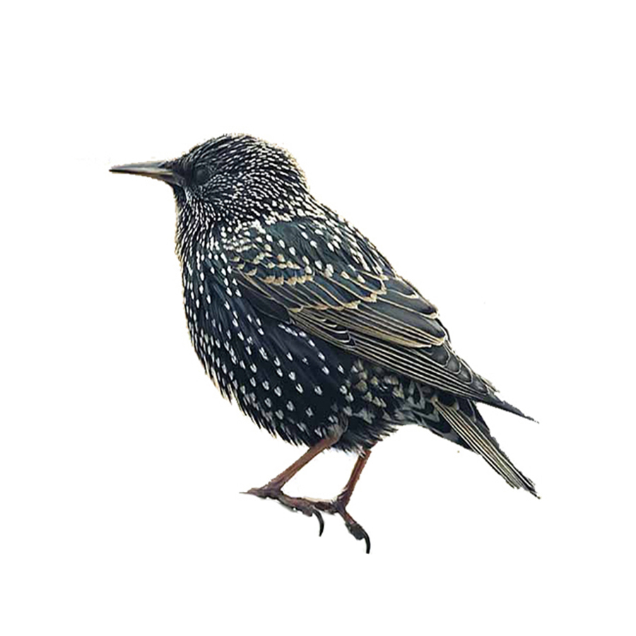 Lo storno è lungo 19-22 cm, ed è riconoscibile in volo per la forma a punta delle ali e la breve coda. Questi uccelli sembrano a prima vista di colore nero, ma quando la loro livrea picchiettata riflette la luce acquisisce iridescenze con sfumature verde o violetto.